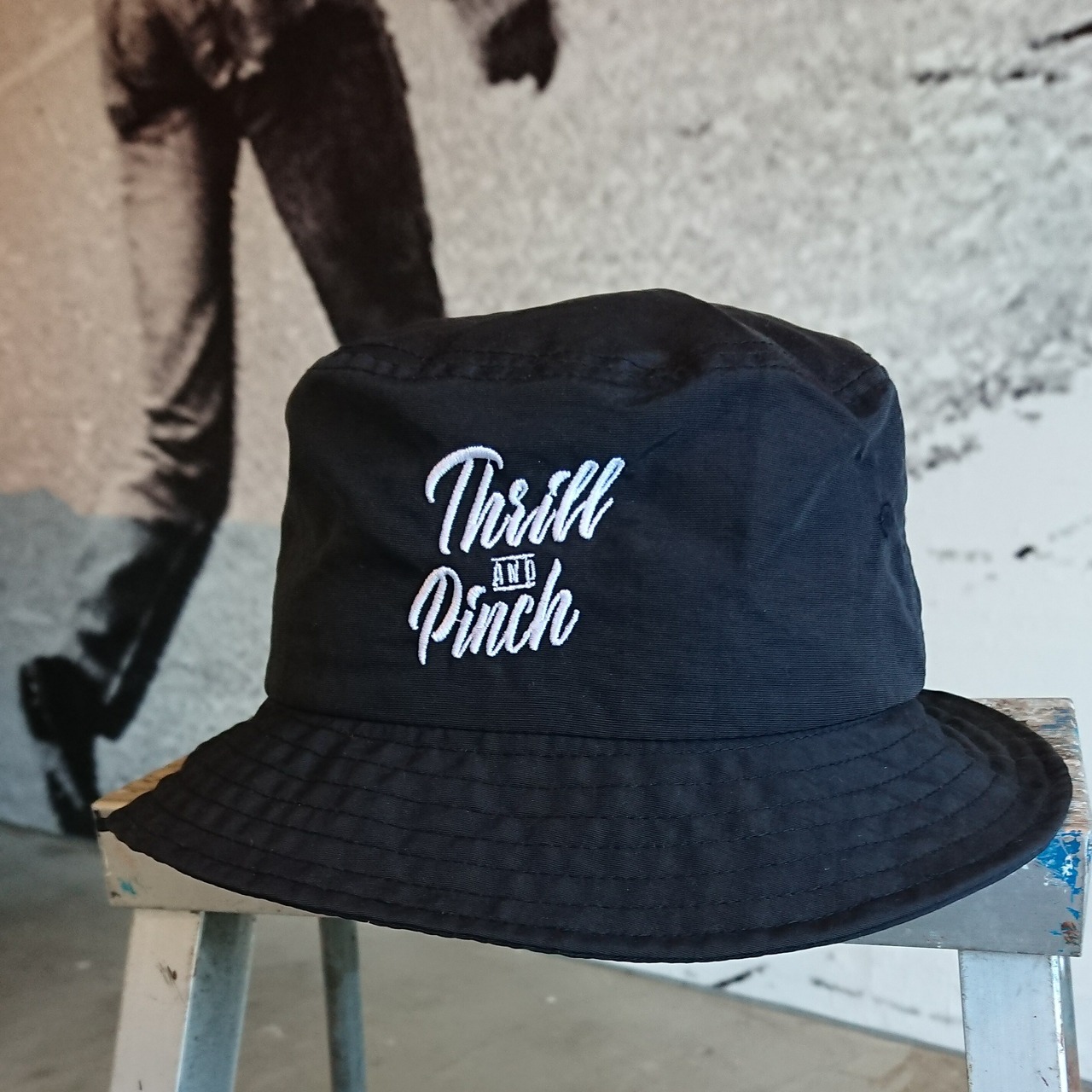 スリルアンドピンチから刺繍ロゴ入りのナイロンハットの登場です。形も綺麗でシンプルな仕上がりですので、コーディネートも合わせやすく男女問わずご使用いただけます。